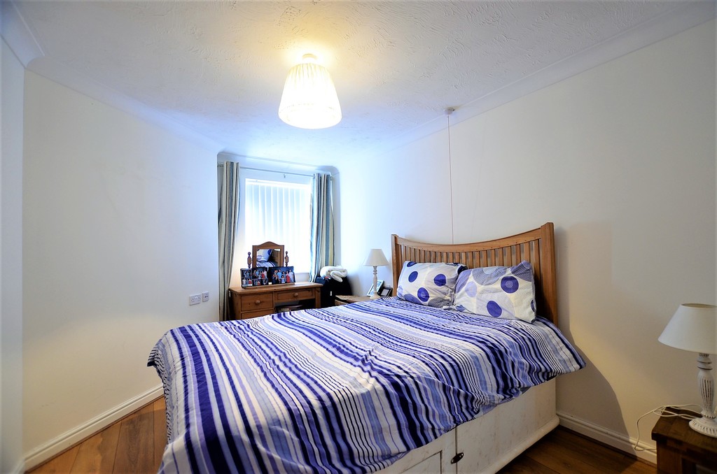 Fitted wardrobes with matching fitted dressing table, drawers, bed side cabinets and headboards, electric heater and front aspect double glazed window.